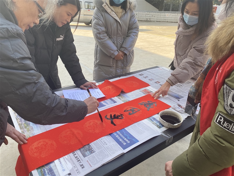 走進社區(qū)送祝福。參與聯(lián)點共建昭亭社區(qū)“我們的節(jié)日·春節(jié)”新時代文明實踐志愿服務(wù)活動,以送春聯(lián)形式為社區(qū)居民送上新春祝福;顒蝇F(xiàn)場,志愿者們忙前忙后傳遞紙墨,書法家們在一張張紅紙上盡情地揮毫潑墨,一個多小時的時間,書寫春聯(lián)等上百副。一副副春聯(lián)給社區(qū)居民們送上了新春的祝福,一張張福字更是讓大家感受到濃濃的傳統(tǒng)年味。