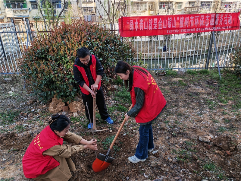 為弘揚雷鋒精神,踐行綠色環(huán)保的發(fā)展理念,3月10日上午,宣州區(qū)國資集團黨支部、團支部與市文明辦、昭亭社區(qū)在網(wǎng)格小區(qū)西林名都開展“綠水青山就是金山銀山”植樹節(jié)環(huán)保志愿服務活動。