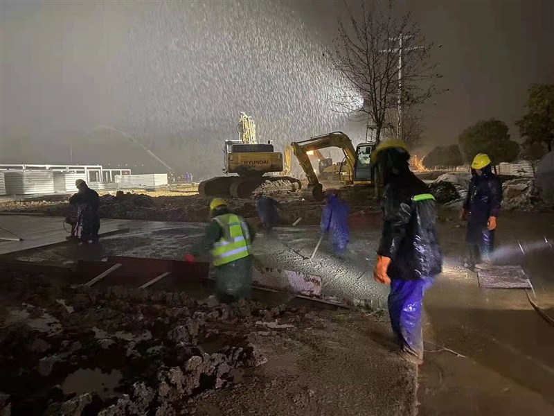 截止1月29日18:00,現(xiàn)場已完成準(zhǔn)備區(qū)所有混凝土澆筑,雨污水管道、室外水電管道施工完成,地坪及道路基本結(jié)束。自1月28日暴雪來襲,施工環(huán)境惡劣,一線人員不畏嚴(yán)寒,連夜雪中奮戰(zhàn),集團(tuán)公司黨員突擊隊、志愿服務(wù)隊出動搬運(yùn)物資、修補(bǔ)設(shè)施等,以飽滿熱情和堅決態(tài)度克服各種困難和障礙,充分展現(xiàn)了“國企加速度”。