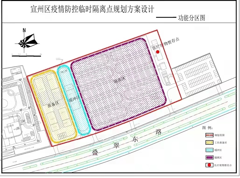 歷時(shí)一個(gè)月,臨時(shí)隔離點(diǎn)項(xiàng)目進(jìn)入最后掃尾階段,項(xiàng)目按照《安徽省集中隔離點(diǎn)場所設(shè)置管理工作規(guī)范(試行)》中“三區(qū)一點(diǎn)”要求進(jìn)行布置,總建筑面積20614平方米,占地面積31931平方米,分為工作準(zhǔn)備區(qū)、緩沖區(qū)、隔離區(qū)和醫(yī)療廢物暫存點(diǎn)。工作準(zhǔn)備區(qū)配有后勤及醫(yī)護(hù)人員宿舍、辦公區(qū)、庫房、洗衣房、配餐間;隔離區(qū)配有健康驛站、服務(wù)中心和消洗準(zhǔn)備間。隔離房間共計(jì)648套,每套均配有空調(diào)、熱水器、淋浴房等基本生活設(shè)施,隔離點(diǎn)網(wǎng)絡(luò)已經(jīng)全面覆蓋,能全面滿足特殊時(shí)期生活需求。