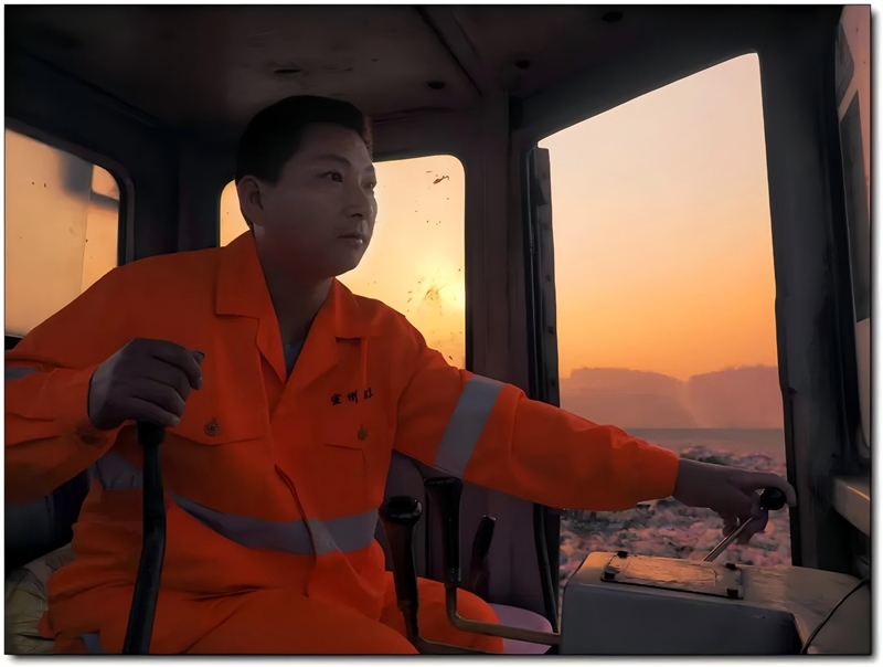 徐開鋒臨危受命,在填埋場當推土機駕駛員。每天的工作就是把400多噸的垃圾推平壓實。每到夏、秋季節(jié),臭氣熏天的垃圾引來更多的蒼蠅“光顧”,用徐開鋒同事的話說,“遠看徐開鋒就好像穿了一副‘將軍鎧甲',蒼蠅扒在他的臉上、手上、背上……”彼時的徐開鋒已經是一名7歲女孩的父親,但為了應對繁重的工作,他每天5點鐘就騎著摩托車出了門,等到晚上回家時,女兒多半已經睡著了!邦I導把我安排到這個崗位,我就要崗位上做出個樣!”,正是胸懷這份“執(zhí)拗”,他在填埋場推土機駕駛員崗位上堅持了11年。